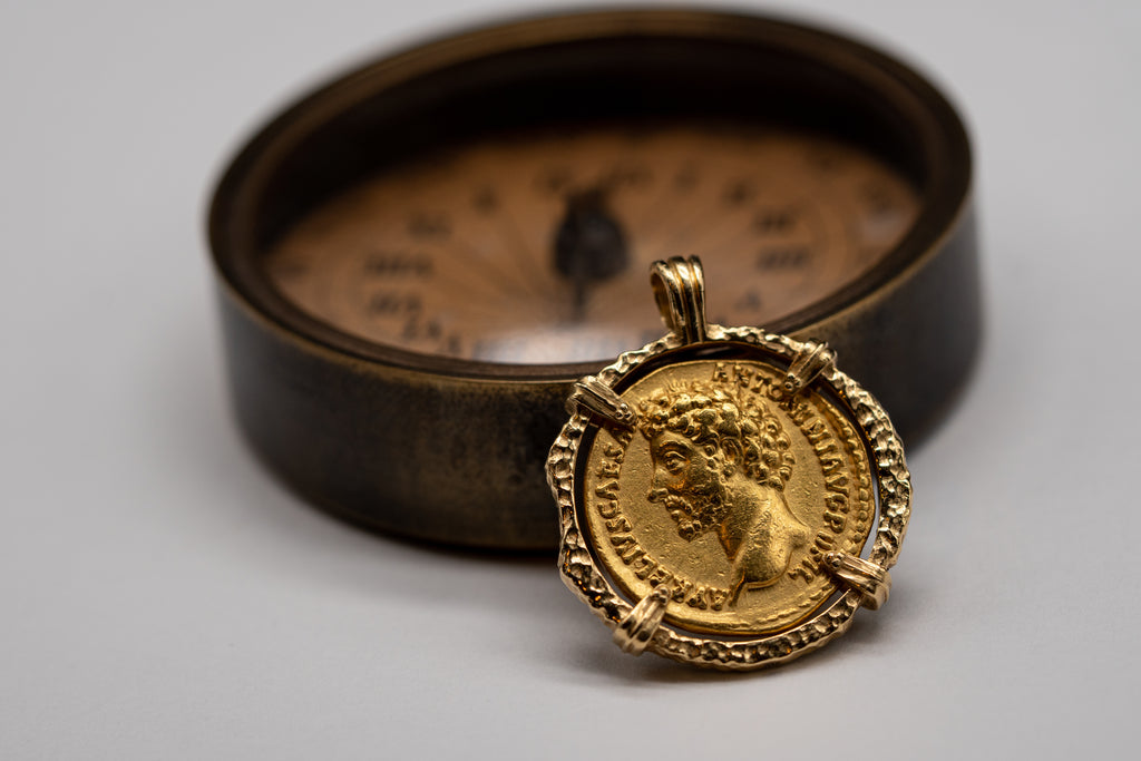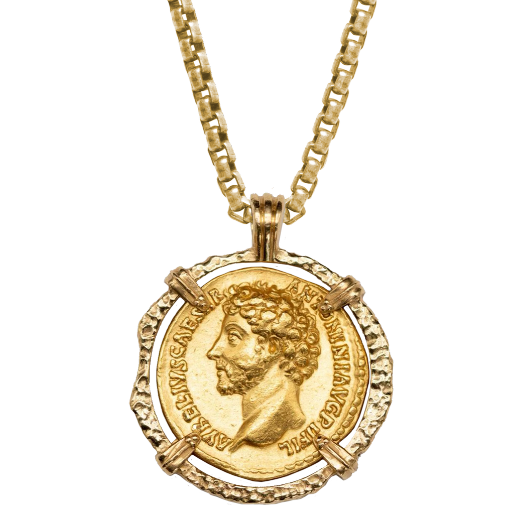 Authentic Roman Coin encased in Pendant with Signature Rounded Box Chain. Pendant and chain available in solid 925 silver or solid 14K gold.